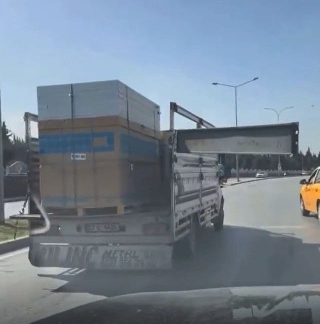 Olay, Şehitkamil ilçesi Mezarlık Kavşağı’nda meydana geldi. İddiaya göre, 27 L 4454 plakalı kamyonet, yoğun trafikte kasa kapağı açık şekilde seyretti. Kasasındaki yüklerle trafikte ilerleyen kamyonetin tehlikeli yolculuğu bir vatandaşın cep telefonu kamerasına yansıdı.