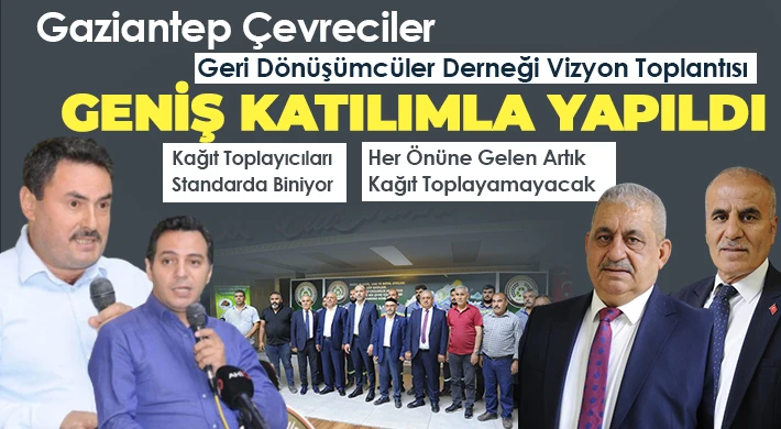 Gerçekleştirilen toplantıda Gaziantep Çevre ve Şehircilik İl Müdürü Hasan Alan, Gaziantep Çevreciler Geri dönüşümcüler derneği Yönetim Kurulu Başkanı Mehmet Aslan, Yönetim kurulu üyeleri ve çok sayıda katılımcıyla gerçekleşti.