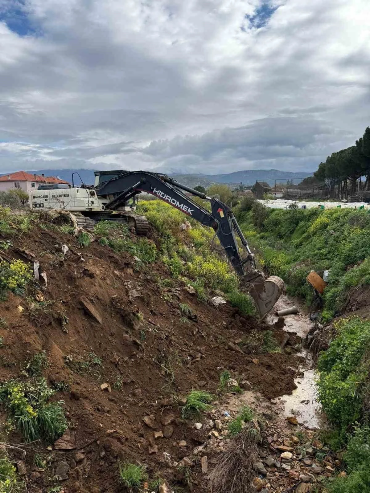 Aydın’ın Karacasu ilçesine bağlı Geyre Mahallesi’nde altyapı iyileştirme ve çevre düzenleme çalışmaları çerçevesinde dere yataklarının temizliği devam ediyor. Karacasu Belediyesi tarafından ilçe genelinde sürdürülen altyapı iyileştirme ve çevre düzenleme çalışmaları kapsamında Geyre Mahallesi’ndeki dere yatakları temizliği sürüyor. Karacasu Belediye Başkanı Mustafa Büyükyapıcı, su taşkınlarının önüne geçilmesine yardımcı olacak ve bölgedeki çevre kirliliğini azaltarak vatandaşların yaşam kalitesini artıracak temizlik çalışmaları ile dere yataklarının daha sağlıklı bir yapıya kavuşacağını belirtti. İlçenin daha temiz, sağlıklı ve düzenli bir yaşam alanına sahip olması için çalışmalara hız kesmeden devam eden Karacasu Belediyesi’nden konu ile ilgili yapılan açıklamada, "İlçemiz genelinde sürdürülen altyapı iyileştirme ve çevre düzenleme çalışmaları kapsamında Geyre Mahallemizde dere yataklarının temizliği titizlikle sürdürülmektedir" ifadelerine yer verildi.