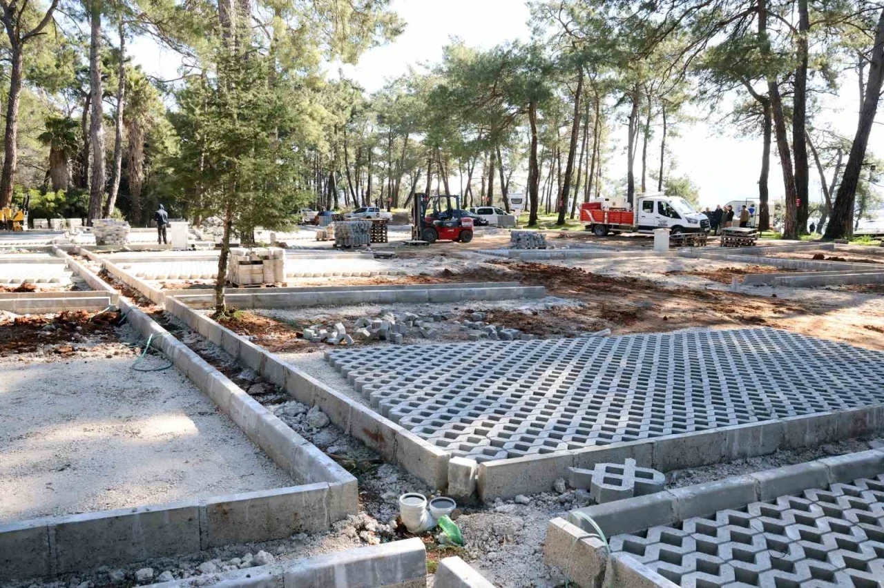 Orman parkında alt ve üst yapı çalışmaları kapsamında karavanlar için belirlenen alanlara çim parke döşemesi yapılarak aralarına çim ekilirken, küçük ve büyük çadırlar için belirlenen alanlarda ekiplerin çalışması devam ediyor. Muğla Vakfı tarafından işletilen orman parkında alt yapı tamamen yenilenirken, üst yapıda özellikle çadırlar için kontrollü elektrik kullanım sistemi getiriliyor. Ayrıca karavan alanı olarak ayrılan alanda her karavan için pis ve temiz su gideri ile elektrik prizi yapılıyor. Her karavanın kullanacağı alanın sınırı belirlenerek karavanın duracağı kısma çim parke yapılıyor.