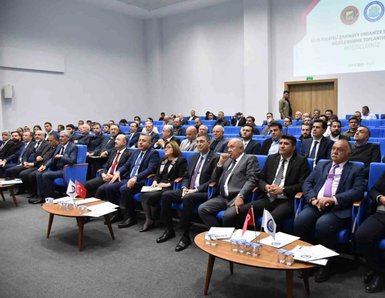Toplantıya, Kilis Valisi ve Polateli Şahinbey Organize Sanayi Bölgesi Yönetim Kurulu Başkanı Tahir Şahin, Gaziantep Vali Yardımcısı Bülent Uygur, Gaziantep Büyükşehir Belediye Başkanı Fatma Şahin, Gaziantep Sanayi Odası (GSO) Yönetim Kurulu Başkanı Adnan Ünverdi, geçmiş dönem Gaziantep Milletvekili Halil Mazıcıoğlu, Gaziantep Büyükşehir Belediye Başkanvekili Hakan Aslansoy, Polateli Şahinbey OSB Başkan Yardımcısı Cevdet Akınal, Polateli Şahinbey OSB Müdürü Abdülkadir Tanrıaşkı, GSO Meclis Üyesi Hakan Çakıcı, GSO Genel Sekreteri Yusuf İzzettin İymen, Kilis Ticaret ve Sanayi Odası Genel Sekreteri Mehmet Murat Sakar, kurum yetkilileri ve firma temsilcileri katıldı. Toplantının açılış konuşmasını gerçekleştiren Kilis Valisi ve Polateli Şahinbey Organize Sanayi Bölgesi Yönetim Kurulu Başkanı Tahir Şahin, Polateli Şahinbey OSB’nin bölge ekonomisi açısından taşıdığı öneme dikkat çekerek, "Bu proje sadece Kilis ve Gaziantep’in değil, tüm bölgenin sanayi altyapısını güçlendirecek stratejik bir adımdır. Altyapı çalışmalarında büyük ilerleme kaydettik ve yatırımcıların ilgisi her geçen gün artıyor. Bugüne kadar tahsis edilen parsellerde yatırım yapacak firmalar tekstil ve gıda ağırlıklı sektörlerde üretimde bulunacaklar. Bölgemizde fabrika inşaatını tamamlamış ve üretim yapmaya başlamış olan 1 firmamız bulunmaktadır. 2 firma fabrika inşaatına başlamış olup; başlamak isteyen 10 adet firma da yapı ruhsat başvurusunda bulunmuştur. İlk etapta 31.630 metrelik yol inşaatında 31.549 metrelik çalışma yapılmış olup, dere geçişlerindeki 8 adet menfez yapısı da tamamlanmıştır. Ayrıca 6 tane terfi merkezi ve 15 km’lik içme su hattıyla, Afrin Çayından Kilis Polateli Şahinbey OSB alanımıza su temini sağlanacaktır. Amanos Tünel Yolu Projesi kapsamında OSB’mizin raylı sistem ve nitelikli karayolu bağlantısı sağlanmış olacak, İskenderun Limanına olan mesafemiz 87 kilometreye düşecektir. Toplantımızın hayırlı olmasını diliyor, Gaziantep Sanayi Odamıza ve emeği geçen herkese teşekkür ediyorum" dedi. Gaziantep Vali Yardımcısı Bülent Uygur da yaptığı konuşmasında, Gaziantep ve Kilis’in birlikte bir organize sanayi bölgesini yapmalarının hem iki il hem de bölge ekonomisi için büyük önem taşıdığını söyledi. Gaziantep Büyükşehir Belediye Başkanı Fatma Şahin, Gaziantep ile Kilis’in kardeş iller olduğunu, iki ili çok daha iyi noktalara taşımak hedefiyle yürütülen bütün projelerin çok değerli olduğunu söyledi. Şahin, Polateli Şahinbey OSB ve tamamlandığında İskenderun Limanı’na kesintisiz ve hızlı bir ulaşım sağlayacak olan Amanos Tüneli Projesi’nden örnekler vererek bu iki projenin Gaziantep, Kilis ve tüm bölgeye değer katacağını ifade etti. GSO Yönetim Kurulu Başkanı Adnan Ünverdi de konuşmasında, "Polateli Şahinbey OSB, iki ilin birlikte gerçekleştirdiği ülkemizin tek ve en büyük organize sanayi bölgesi projesidir. OSB genişleme sahası ile birlikte 45 milyon metrekareye kadar büyütülme imkanına sahiptir. Bölgemizde büyük bir özveriyle çalışmalar sürmektedir. Bu bölgede amacımız, firmalarımızın makul fiyatlarla üretim yapabilecekleri arsa ve üretim tesislerine kavuşmalarıdır. Bazı firmalarımız fabrika yapımına devam ediyor ve bir firmamız da fabrikasını kurarak üretim yapmaya başladı’’ dedi. Bölgenin 6. bölge teşvikleri kapsamında yer almakta olup, çok önemli imkanlar sunduğunu dile getiren Adnan Ünverdi, "Bu projeyle eşgüdümlü olarak Hassa-Dörtyol Tünel Projesi yürütülmektedir. Proje ile bölgemizden İskenderun Limanı’na olan mesafemiz 87 kilometreye düşecektir. Amanos Tünel Projesi’nin büyük bir aksilik olmazsa temmuz ayında yapımına başlanması beklenmektedir. Yürütülen çalışmalar, Kilis ve Gaziantep ile birlikte tüm bölgenin kalkınmasında önemli rol üstlenecektir. Suriye’de başlayan yeni dönemle birlikte, sınırın öbür tarafına en yakın üretim ve tedarik merkezi yine bu bölgemiz olacaktır. Bu vesile ile Valilerimize, Büyükşehir Belediye Başkanımıza, Polateli Şahinbey OSB yönetimine, emeği olan herkese ve bugün programımıza katılan değerli yatırımcılarımıza teşekkür ediyorum" diye konuştu.