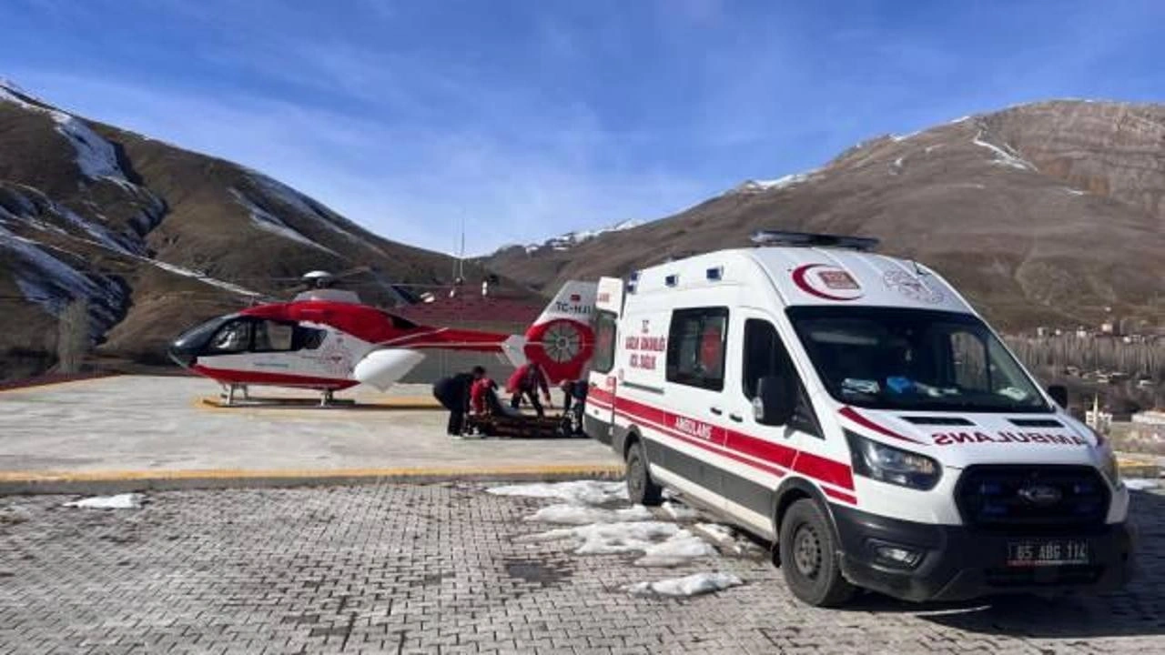 Kısa sürede hazırlanan ambulans helikopter, Bahçesaray’a giderek hastayı Van Eğitim ve Araştırma Hastanesi’ne ulaştırdı.