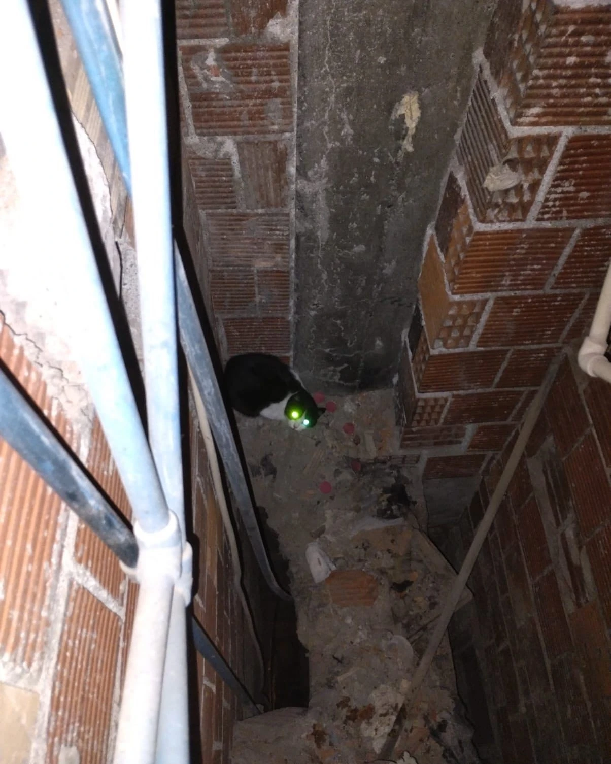 Hatay’ın İskenderun ilçesinde binanın havalandırma boşluğuna düşen kedi itfaiye ekipleri tarafından kurtarıldı.