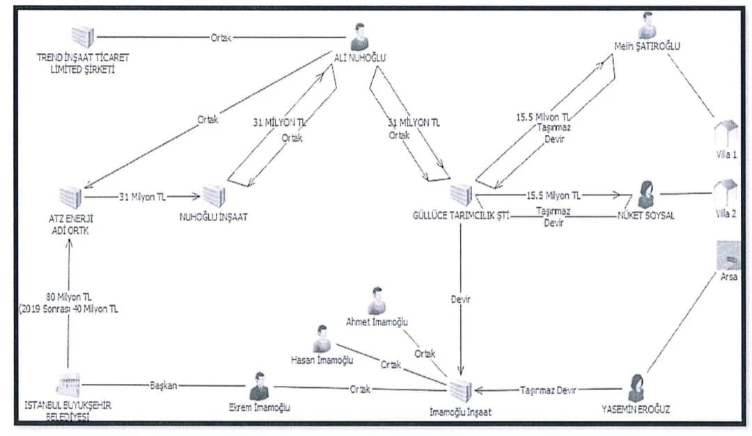 Soruşturmanın kilit simlerinden İBB Başkanı Ekrem İmamoğlu ile "İmamoğlu’nun kara kutusu" olarak anılan şüpheli Ali Nuhoğlu’nun ihale çarkı böyle deşifre oldu. Nuhoğlu’nun şirketinde daha önce "elektrikçi" olarak çalışan ve sonrasında İstcon İnşaat Yatırım Sanayi ve Ticaret A.Ş. Yönetim Kurulu Başkanı olan zanlı Furkan Remzi Ceylan’ın, İBB’den 3 milyar liralık ihale aldığı tespit edildi. Ceylanın, yönetin kurulu başkanlığı yaptığı şirketin sadece 2024 yılında KİPTAŞ ve İSFALT’tan 3 milyar liralık ihale aldığını tespit eden ve paranın izini süren Mali Şube Polisi, söz konusu paranın yine soruşturmanın en kritik isimlerinden Ali Nuhoğlu’nun kendi şirketine aktarıldığını ortaya çıkardı. 3 süper lüks villanın devredildiği tarihe denk gelen ihale