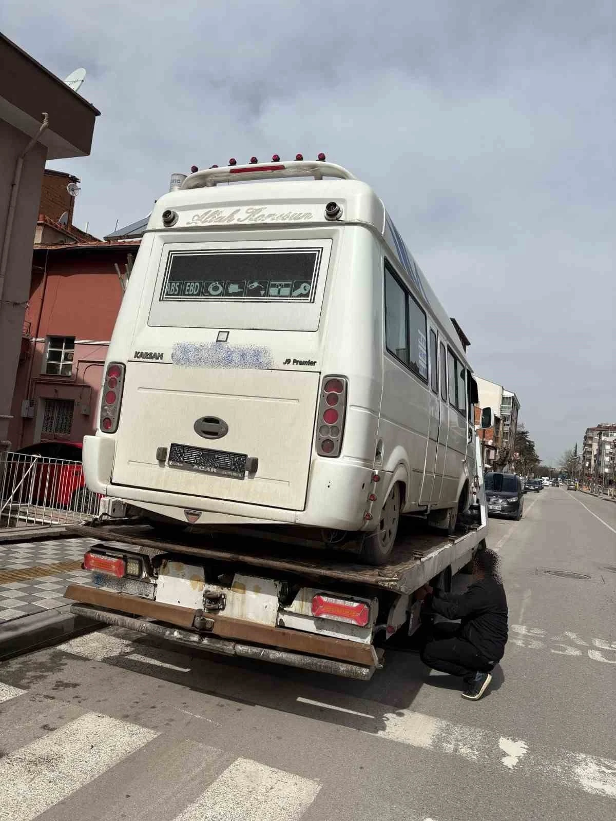 Afyonkarahisar’a ikiz plaka ile yolcu taşımacılığı yapan dolmuş polisin dikkati sayesinde yakalanırken, trafikten men edildiği tespit edilen ancak bir başka aracın plakasını takarak yolcu taşıyan araç sahibine toplamda 55 bin 569 TL para cezası kesildi.