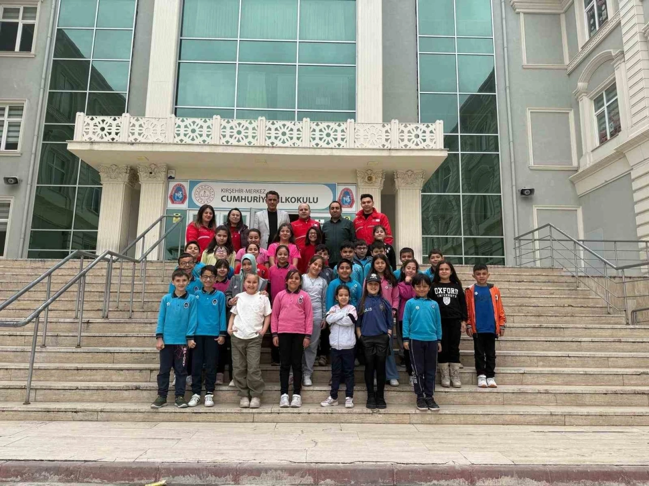 Okul harçlıklarından yardım toplayan öğrenciler, topladıkları paraları Türk Kızılay’ı Kırşehir Şubesi’ne teslim etti. Kızılay yetkilileri ise öğrencilerin bağışlarına anında cevap vererek okullarında ziyaret ettiği çocuklara teşekkür belgesi ve Halil-İ Ahmer çiçeği verdi.