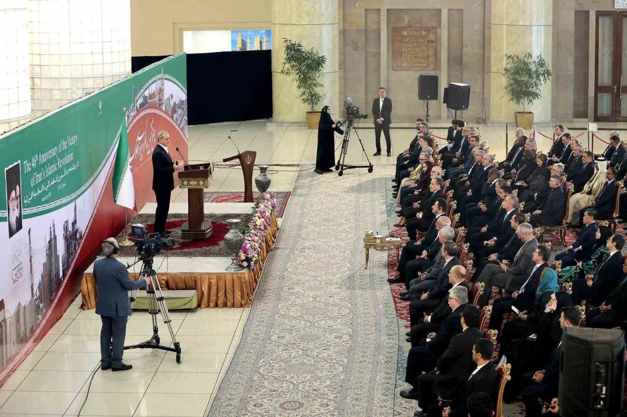 İran Cumhurbaşkanı Mesud Pezeşkiyan, İran İslam Devriminin 46’ıncı yıldönümü dolayısıyla Tahran’da yabancı ülkelerin diplomatik temsilcileri ile bir araya geldi. Bölgesel ve uluslararası gelişmelere değinen Pezeşkiyan, bölge ülkeleri arasında iş birliği vurgusu yaparak, İran’ın savaş arayışında olmadığını söyledi. Pezeşkiyan, "İslam Devriminin ilk yıllarında olduğu gibi seçimler sonrası hükümeti kurduğumuz ilk gün Tahran’da Hamas lideri İsmail Haniye’yi şehit ettiler ve teröre başvurdular. Hükümet olarak mesajımız barış, güvenlik ve istikrar olurken ilk günden itibaren ülkemize yönelik üst üste saldırılar gerçekleştirildi. Uluslararası toplum ve medya ise, insafsız bir şekilde İran’ı bölgesel ve küresel sorun olarak göstermeye çalıştı" dedi. "Dünya soykırım karşısında sessiz kaldı"