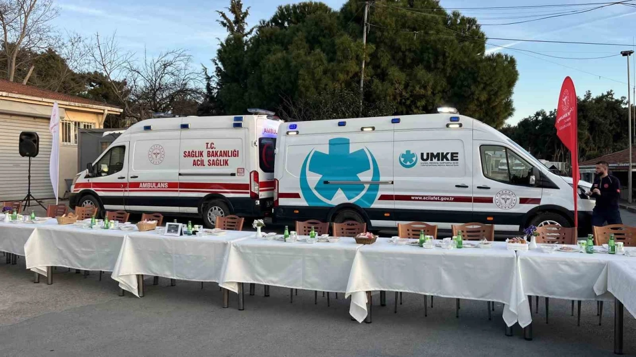 İftar öncesi konuşan İl Sağlık Müdürü Abdullah Emre Güner, "Bu sene personellerimizle kendi çalıştıkları yerlerde iftar yapmaya başladık. Bugün 7. iftarımız. 112 ve UMKE sağlık personellerimizle beraberiz. Aslında sağlığın görünmeyen kahramanları ile beraberiz. İstanbul’da 2024’te 2 buçuk milyondan fazla çağrıyı cevaplayıp, 700 bin hastanın acil çağrısına, sağlığa ve hayata tutunmasına koşturmuş bir ekipten bahsediyoruz. Onlarla biz gurur duyuyoruz. Biz şehir merkezinde 8-10 dakika, kırsalda 20 dakika ortalama ile çağrılarımıza cevap verebiliyoruz ama ambulansın içinde olduğunuz noktada o dakikalar aslında size saatler, belki aylar gibi geliyor. Bu heyecanı, bu korkuyu, bu telaşı sizinle beraber yaşayıp hayata tutunmanıza yardım eden bir ekipten bahsediyoruz. Allah onların hepsinden razı olsun. Biz onlarla gurur duyuyoruz. Kendimizi de bir 112 ve UMKE’ci olarak kabul ediyoruz. Bugün onlarla beraber olmanın şerefiyle beraberiz. İnşallah bundan sonra da biz çalışanlarımızla beraber olmaya devam edeceğiz. Bir gün ambulansın içindeki hasta biz veya yakınımız olabilir. Fermuar sistemi ile beraber sağa sola çekilerek ambulanslarımıza yol vermemiz lazım çünkü onlar yaşama yol veren ekiplerimiz. Sürücülerden bu empatiyi yapmalarını rica ediyorum" dedi.