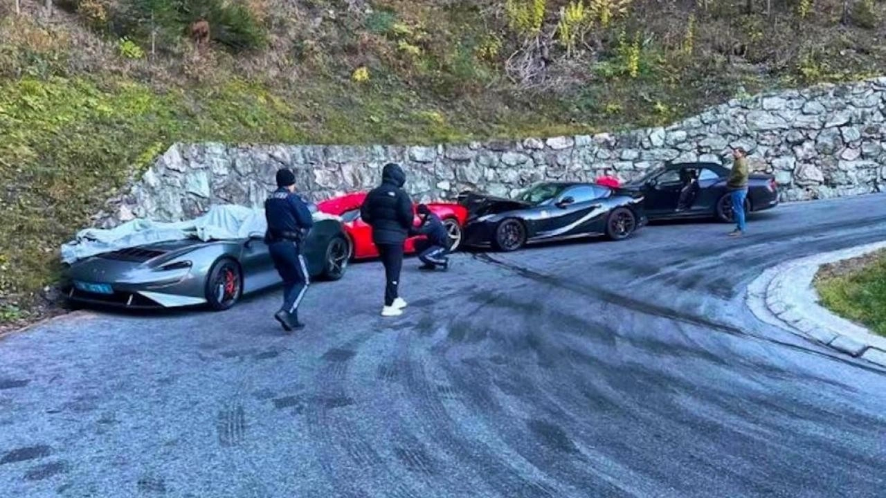 Kazada, dünyanın en lüks dört otomobili birden ağır hasar gördü. Kazaya bir McLaren Elva, bir Ferrari La Ferrari, bir Ferrari 812 Superfast ve bir Bentley Continental GTC karıştı. Kazada, üçüncü sırada giden ve değeri 500 bin İsviçre Frank'ının üzerinde olan Ferrari 812 Superfast sürücüsünün güneşten gözünün kamaşması nedeniyle, dünyada sadece 499 örneği bulunan 4 milyon İsviçre Frank'ı değerinde olan önündeki Ferrari La Ferrari'ye çarptı.