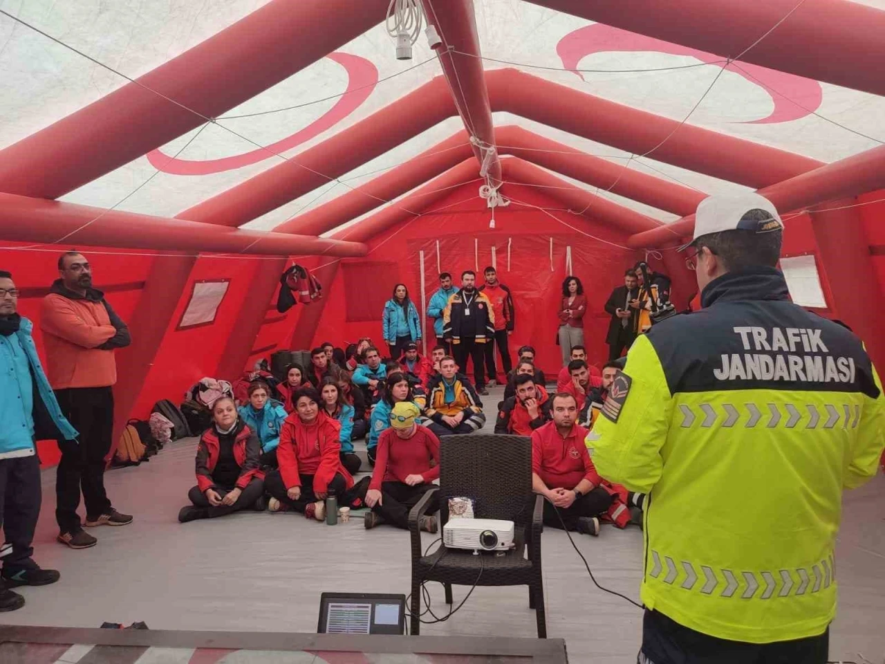 Aydın İl Jandarma Komutanlığı ekipleri Kuşadası ilçesinde UMKE ekiplerine trafik konularında bilgilendirmede bulunuldu.