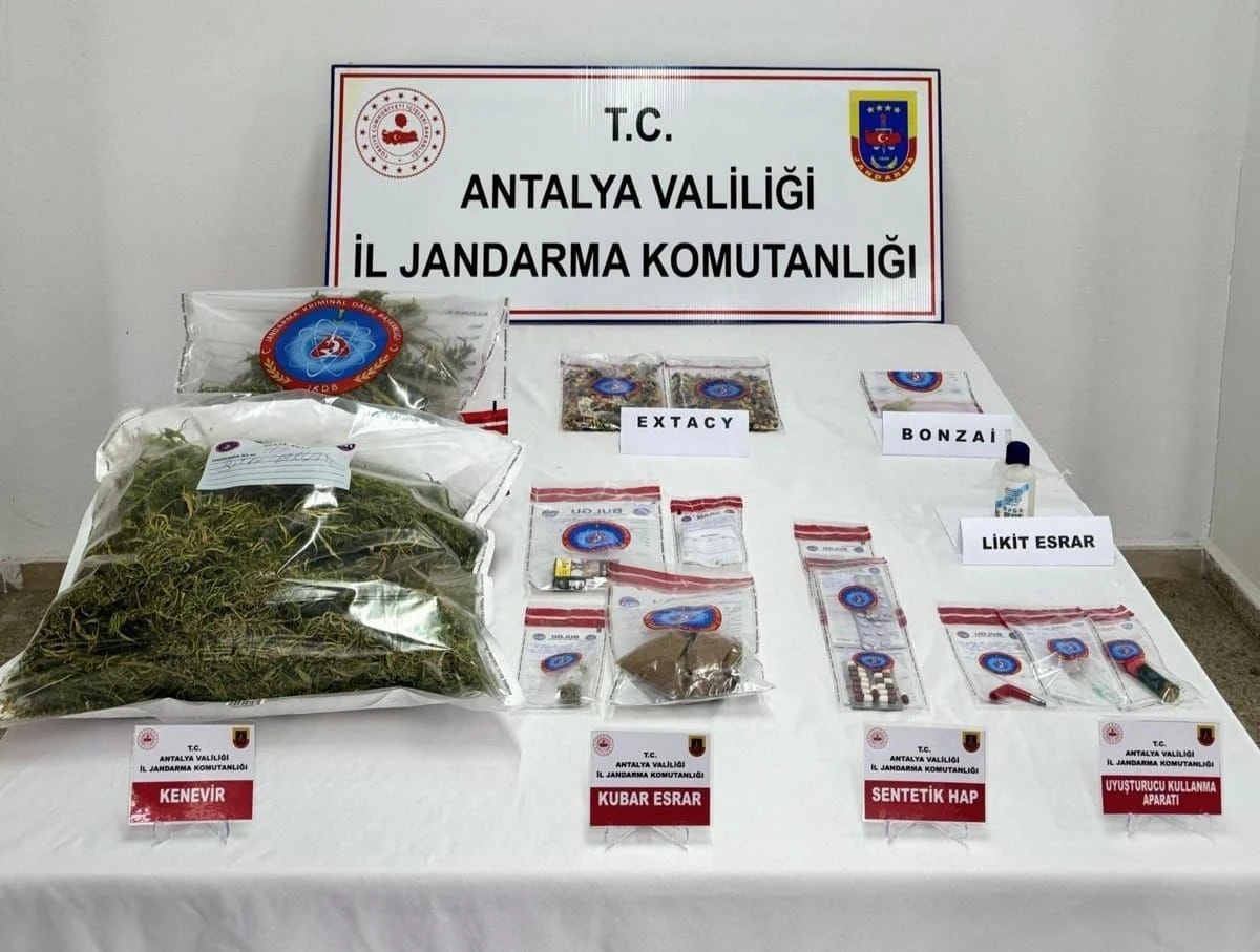 Antalya’nın Gazipaşa ilçesinde jandarma tarafnıdan yapılan uyuşturucu operasyonunda 13 kök Hint keneviri, yol kontrol uygulamasında ise çok sayıda ecstasy, bonzai, kubar esrar, sentetik hap, likit esrar ve uyuşturucu kullanma aparatları ele geçirildi.