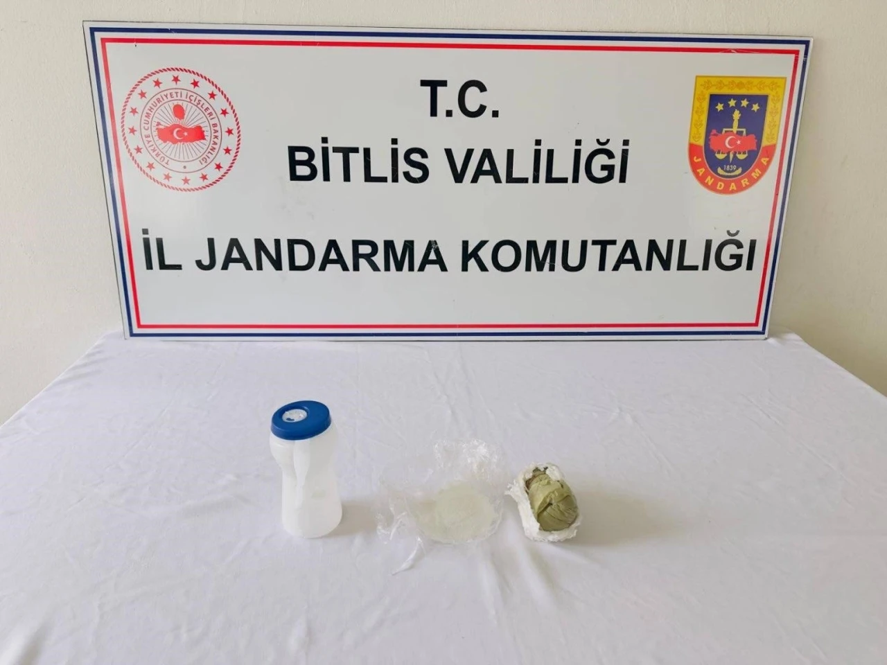 Bitlis İl Jandarma Komutanlığınca Göçmen Kaçakçılığı ve İnsan Ticareti Timi ile Tatvan İlçe Jandarma Komutanlığı tarafından düzenlenen uyuşturucu operasyonunda 105 gram toz esrar ele geçirildi.