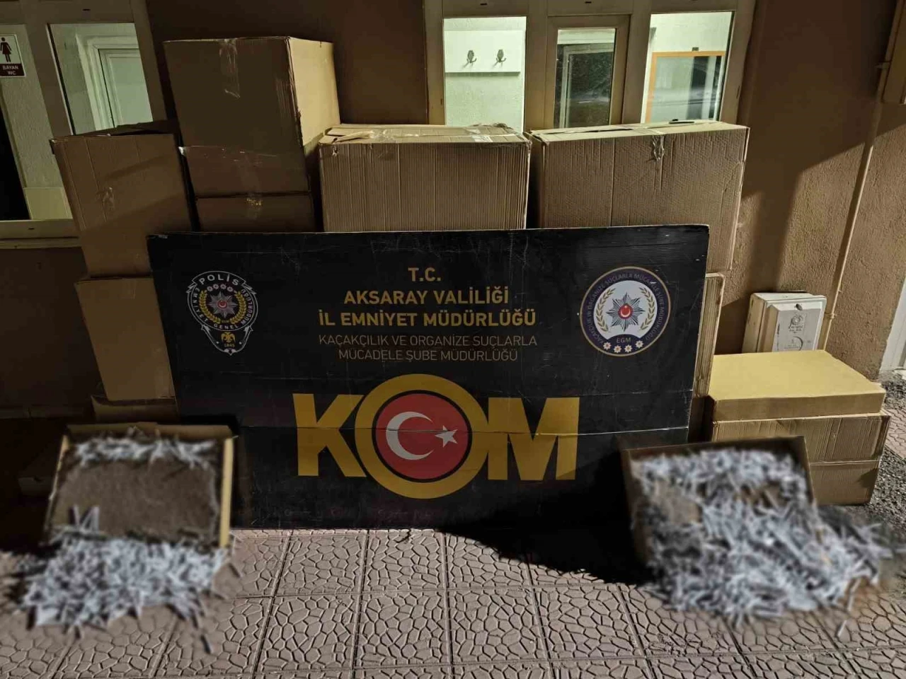 Edinilen bilgiye göre, kaçakçılıkla mücadele çerçevesinde çeşitli çalışmalar yapan İl Emniyet Müdürlüğü Kaçakçılık ve Organize Suçlarla Mücadele (KOM) Şubesi ekipleri şüphe üzerine karayolunda seyreden bir kamyonu durdurdu. Ehliyet ve ruhsat kontrolünden geçirilen M.S. (40) isimli sürücünün tedirgin hal ve hareketlerinden şüphelenen KOM ekipleri Aksaray Cumhuriyet Başsavcılığı koordinesinde kamyonda arama yaptı. Kamyonun kabin ve kasasında yapılan aramada 500 bin adet gümrük kaçağı sigara ele geçirildi. Gözaltına alınan kamyon sürücüsü ifadesi alınmak üzere emniyete götürülürken şahıs hakkında 5607 Sayılı Kanuna Muhalefet suçundan işlem başlatıldı.