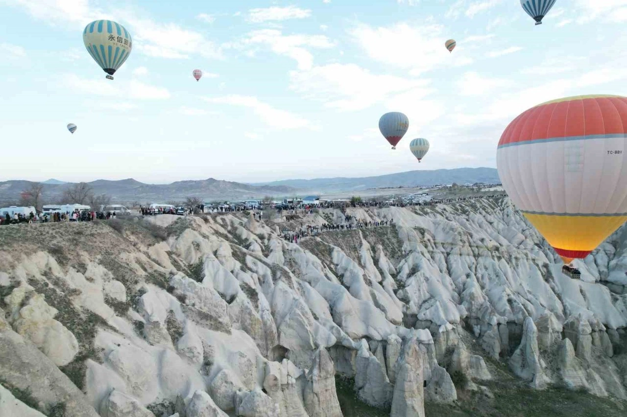 Bayram tatilini Kapadokya bölgesinde geçirmek isteyen yerli turistler, bayram sabahında havalanan sıcak hava balonları ile Kapadokya bölgesini kuş uçuşu seyretme imkanı bulurken, balona binemeyen yerli ve yabancı turistler ise Kapadokya bölgesinin seyir tepelerinde uçan balonları izleri. Bölgede hava muhalefeti nedeniyle yapılamayan sıcak hava balon uçuşları bayram sabahı tekrar başladı. Havalanan sıcak hava balonları Kapadokya semalarında yeniden görsel şölen oluşturdu.