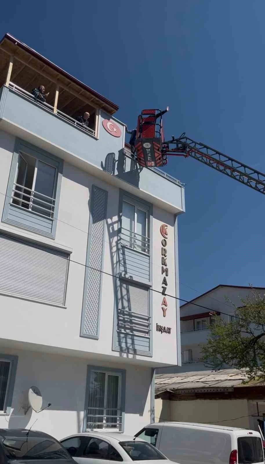 Kocaeli’nin Derince ilçesinde kaplama yapmak için çıktığı çatıda mahsur kalan ustayı itfaiye ekipleri kurtardı.