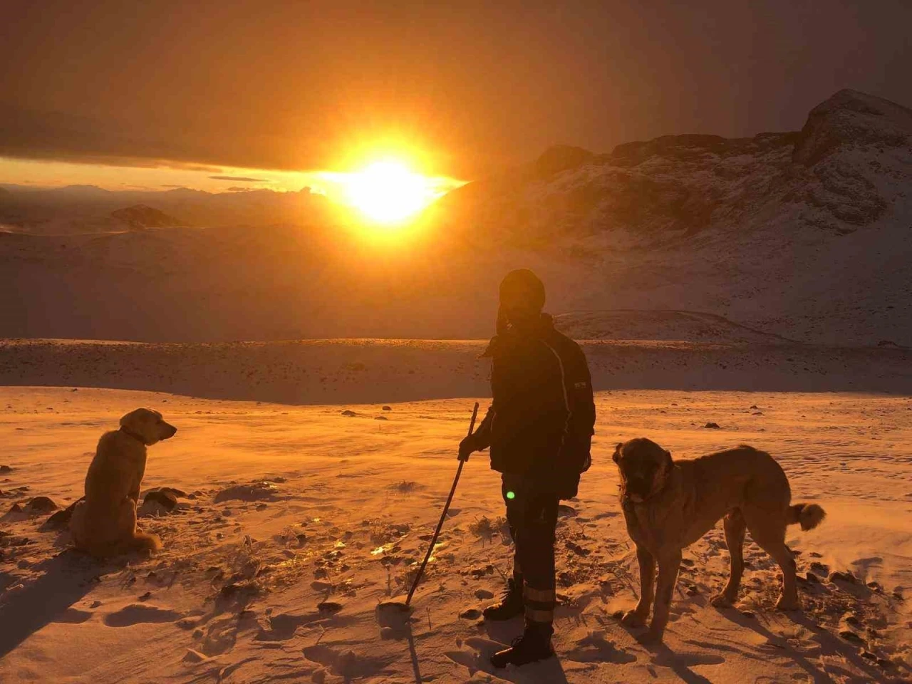 Tunceli’nin Ovacık ilçesine bağlı Kızılçayır bölgesinde yaylada olan hayvan yetiştiricisi, aniden bastıran kar ve soğuk nedeniyle sürülerini güçlükle yayladan indirdi. 24 saat süren zorlu yolculuğun ardından sürü sahibi köyüne sağ salim ulaşmayı başardı.