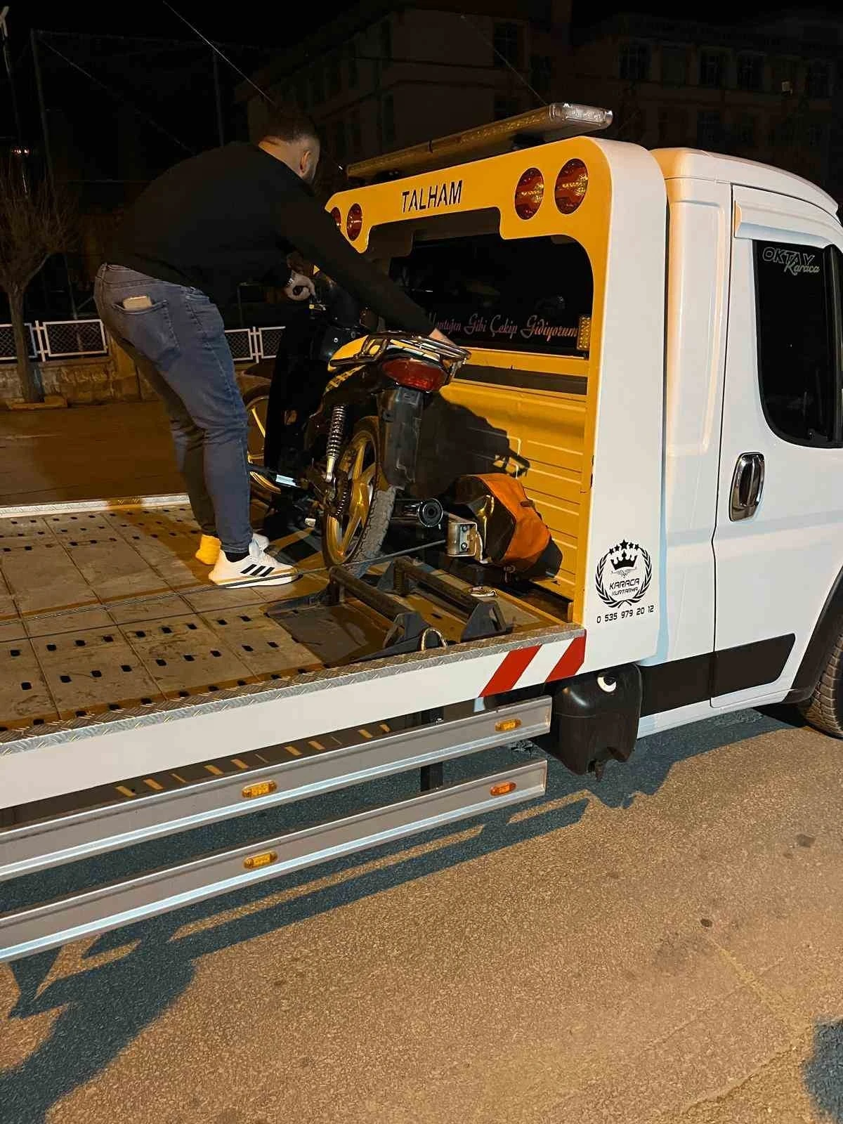 Karapınar’da polis ekipleri ilçenin farklı yerlerinde motosiklet denetimlerine devam ediyor. Denetimlerde kurallara uymayan, eksikleri olan motosikletlerle ilgili işlem yapılıyor. Yapılan denetimlerde polis ekiplerince 1 adet çalıntı motosiklet yakalandı. Yetkililer, çalıntı motosikletlerle ilgili dikkatli olunması gerektiğini belirterek, "Sorgulamadan aldığınız faturası olmayan motosiklet, tarafınıza resmi evrakta sahtecilik, hapis cezası ve yüksek miktarda para cezası olarak dönebilir. Karapınar’da usulsüz motosiklet kullanımı, okul önlerinin terörize edilmesi, çalıntı, kazıntı ve change motor kalmayacak ve sokak terörü şeklinde tezahür eden araç kullanımı, modifiye araç, drift yapma gibi şeylerin kökü kazınacak" açıklamasında bulundu.