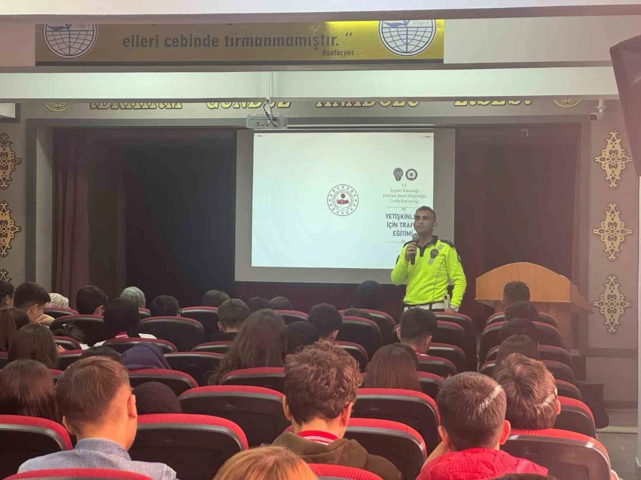 Konya’nın Karapınar İlçesinde "Güvenli Trafik Güvenli Gelecek" projesi çerçevesinde Karapınar İbrahim Gündüz Anadolu Lisesi öğrencileri trafik kuralları, yaya güvenliği, sürücü sorumlulukları ve trafikte karşılaşabilecekleri riskler hakkında bilgilendirildi.