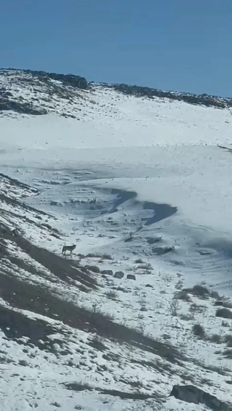 Kars’ın Akyaka ilçesine bağlı Camuşlu köyü yoluna kadar gelen kurt bir vatandaş tarafından cep telefonuyla kaydedildi. Görüntülerde, aç kaldığı tahmin edilen kurdun dikkatlice dağlık alana ilerlediği görülüyor. Özellikle kış aylarında yaban hayvanları yiyecek bulmakta zorlanırken son günlerde Kars genelinde görülen kurtların yiyecek bulmak için yerleşim yerlerine kadar inmesi dikkat çekiyor. Vatandaş tarafından çekilen görüntüde kurdun yerleşim yerinden uzaklaşarak dağlık alana gitmesi yer alıyor..