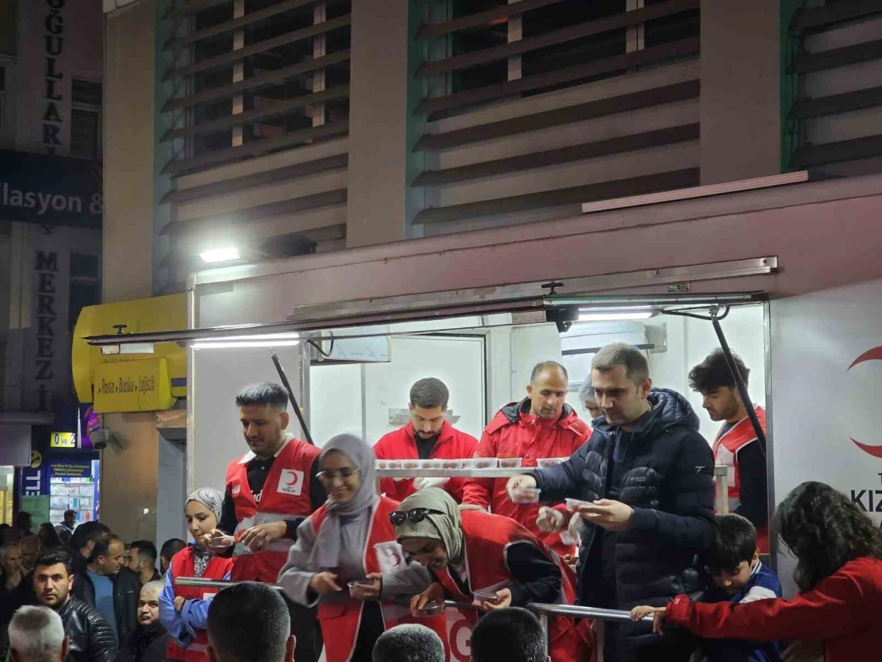 Kızılay Ağrı Şube Başkanlığı gönüllüleri, mübarek Kadir Gecesi dolayısıyla Merkez Camisi önünde vatandaşlara lokma ikram etti.