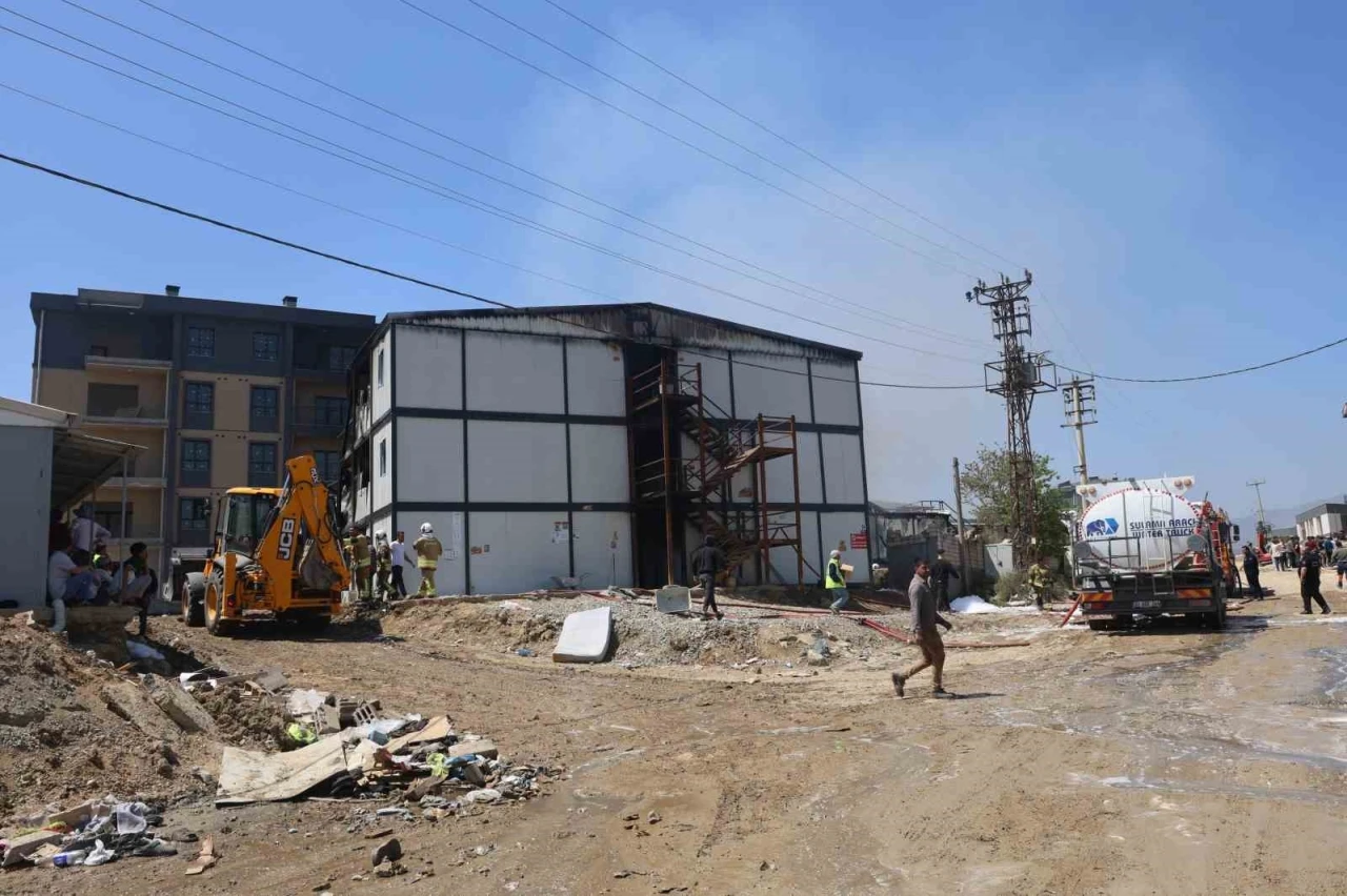 Hatay’da şantiye alanında işçilerin kaldığı konteyner yatakhane alevlere teslim oldu. Yanarak kullanılmaz hale gelen yatakhanede çıkan yangın yaralanma ve can kaybı yaşanmadan söndürüldü.