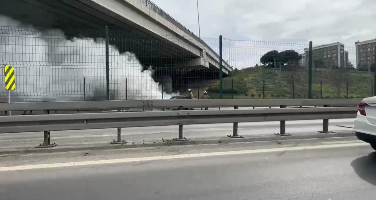 Üsküdar’da D-100 karayolunda BMW marka otomobil alevlere teslim olurken, yol bir süreliğine trafiğe kapandı.