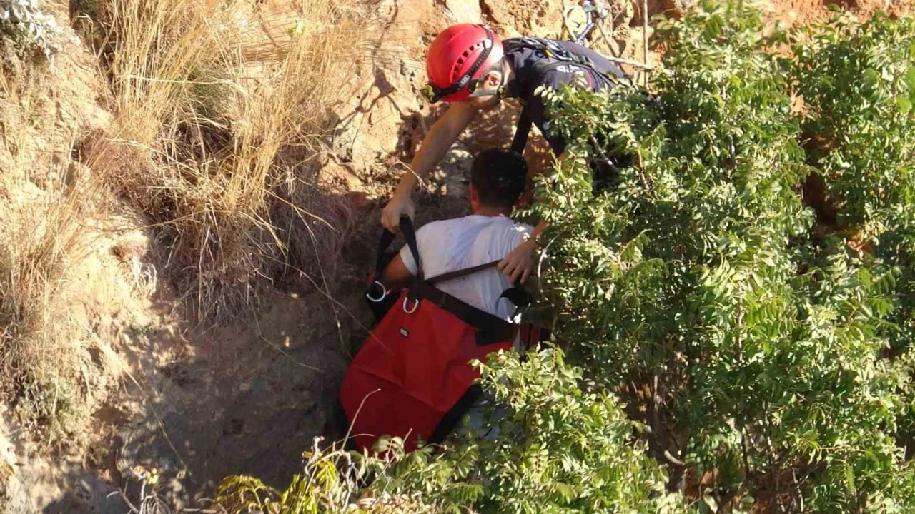 Antalya’da bir şahıs, uygunsuz halde gördüğü kişileri uyarmak için 35 metre yükseklikteki bir uçurumdan kayalıklara indi. Kayalıklarda mahsur kalan ve yardım çığlıkları atan genci itfaiye ekipleri kurtardı. Kurtarıldıktan sonra konuşan genç, “Aşağıda terbiyesiz bir adam vardı, ona ceza keseyim derken yanlışlıkla kendime ceza kestim” dedi. Olay, saat 09.00 sıralarında Muratpaşa ilçesi Bahçelievler Mahallesi Atatürk Kültür Parkı’nda bulunan kayalıklarda meydana geldi. Edinilen bilgiye göre, kayalıklarda uygunsuz halde bulunan bir kişiyi uyarmak isteyen Nurettin M. A. (27), mahsur kaldı. Yaklaşık 35 metre yükseklikteki kayalıklarda sıkışan Nurettin M. A.’nın, yardım çığlıkları atarak çevredeki vatandaşlardan yardım istedi. Kayalıklarda mahsur kalan genci gören vatandaşlar olayı hemen 112 Acil Çağrı Merkezi’ne ihbarda bulundu. İhbar üzerine bölgeye AFAD, itfaiye ve polis ekipleri sevk edildi. ’Cezayı kendime kestim’