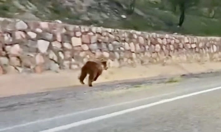 Volkan Şahin isimli vatandaş, köy yolunda ilerlediği sırada aracının önüne çıkan ayıyı görüntüledi. Köyde ilk kez ayı görüldüğü belirtilirken bu anları kayda alan Şahin, "Bir ayımız eksikti" diyerek sosyal medya hesabında paylaştı. Kısa süreli yol kenarında koşan ayı daha sonra istinat duvarından atlayarak izini kaybettirdi.