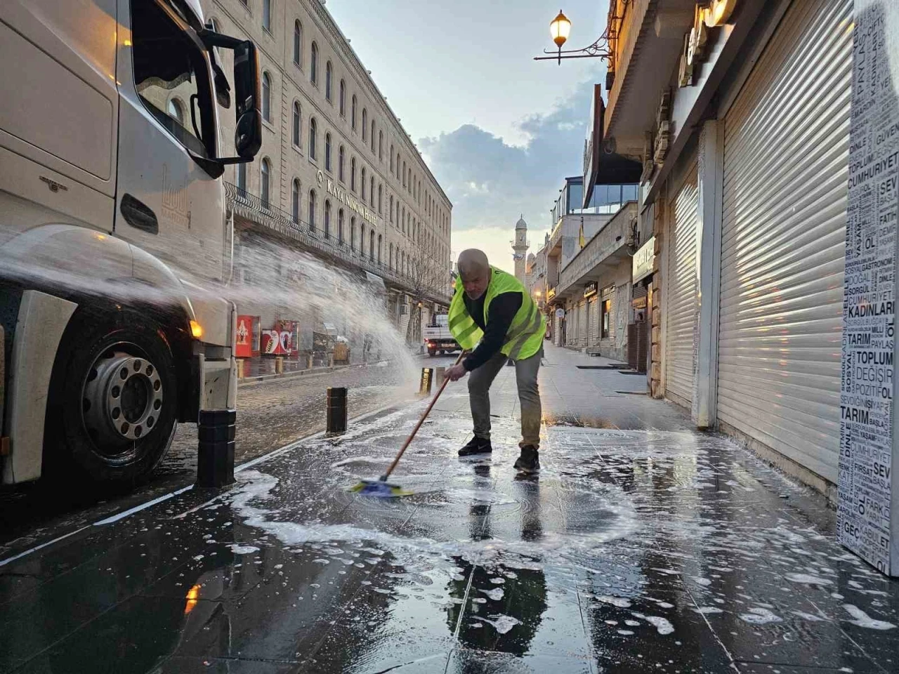 Mardin Büyükşehir Belediyesi Çevre Koruma ve Kontrol Daire Başkanlığı tarafından, Ramazan Bayramı öncesinde Tarihi 1. Cadde’de kapsamlı bir temizlik çalışması gerçekleştirildi. Çalışmalar kapsamında cadde, köpük ve tazyikli su kullanılarak detaylı bir şekilde temizlendi.