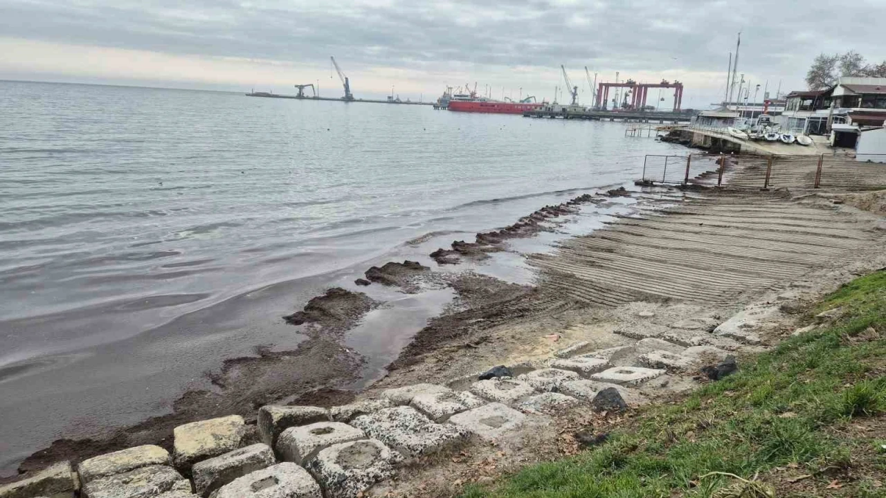 Poyraz fırtınasının ardından Süleymanpaşa kıyılarında oluşan kızıl yosunlar, sahil şeridinde kötü kokuya neden oldu.