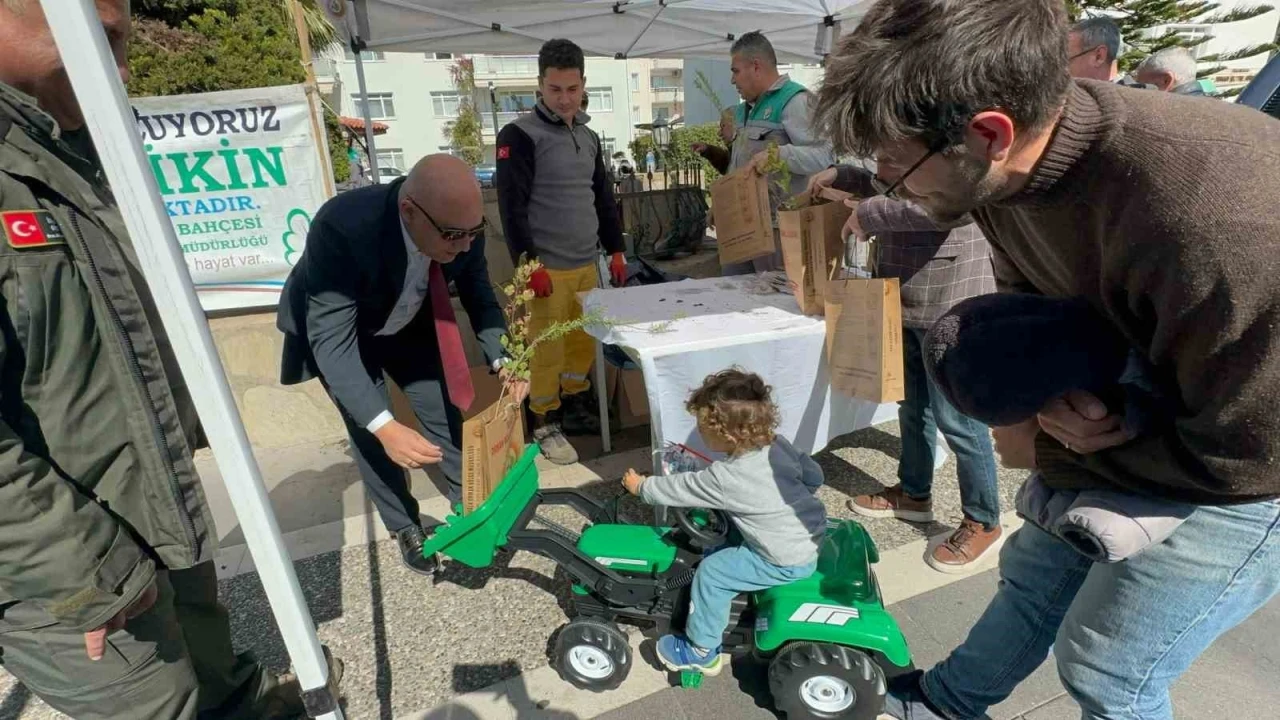Muğla’nın Marmaris ilçesinde, 21 Mart Dünya Ormancılık Günü kapsamında düzenlenen fidan dağıtımı etkinliği büyük ilgi gördü. Marmaris Orman İşletme Müdürlüğü tarafından gerçekleştirilen etkinlikte yüzlerce kişi fidan almak için sıraya girdi. Saat 11.00’de başlayan etkinliğin saat 15.00’e kadar devam edeceği öğrenilirken, 4 saatte 8 bin fidan dağıtımı yapılacak. Büyük orman yangınlarından en çok etkilenen ilçelerden biri olan Marmaris’te, Orman İşletme Müdürlüğü önünde ve Atatürk Meydanı’nda saat 11.00’de başlayan fidan dağıtımında, defne, keçiboynuzu, biberiye, sığla ve servi başta olmak üzere birçok farklı türde fidan ücretsiz olarak vatandaşlara ulaştırıldı. Etkinlik kapsamında çocuklara özel hediyeler de dağıtıldı. Vatandaşlar, doğaya katkıda bulunmaktan duydukları memnuniyeti dile getirerek, bu tür etkinliklerin daha sık düzenlenmesi gerektiğini belirtip fidanları bahçelerine ve doğa gezisine çıktıklarında ağaçsız kalan alanlara dikeceklerini ifade ettiler. "Doğanın önemini bir kez daha hatırlıyoruz"