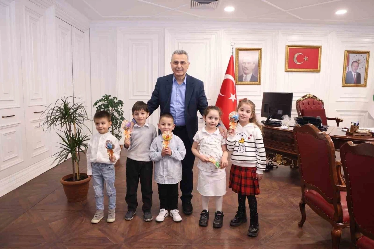 Samsun’da anaokulu öğrencileri protokol üyelerini tek tek ziyaret ederek bayramlarını kutladı.