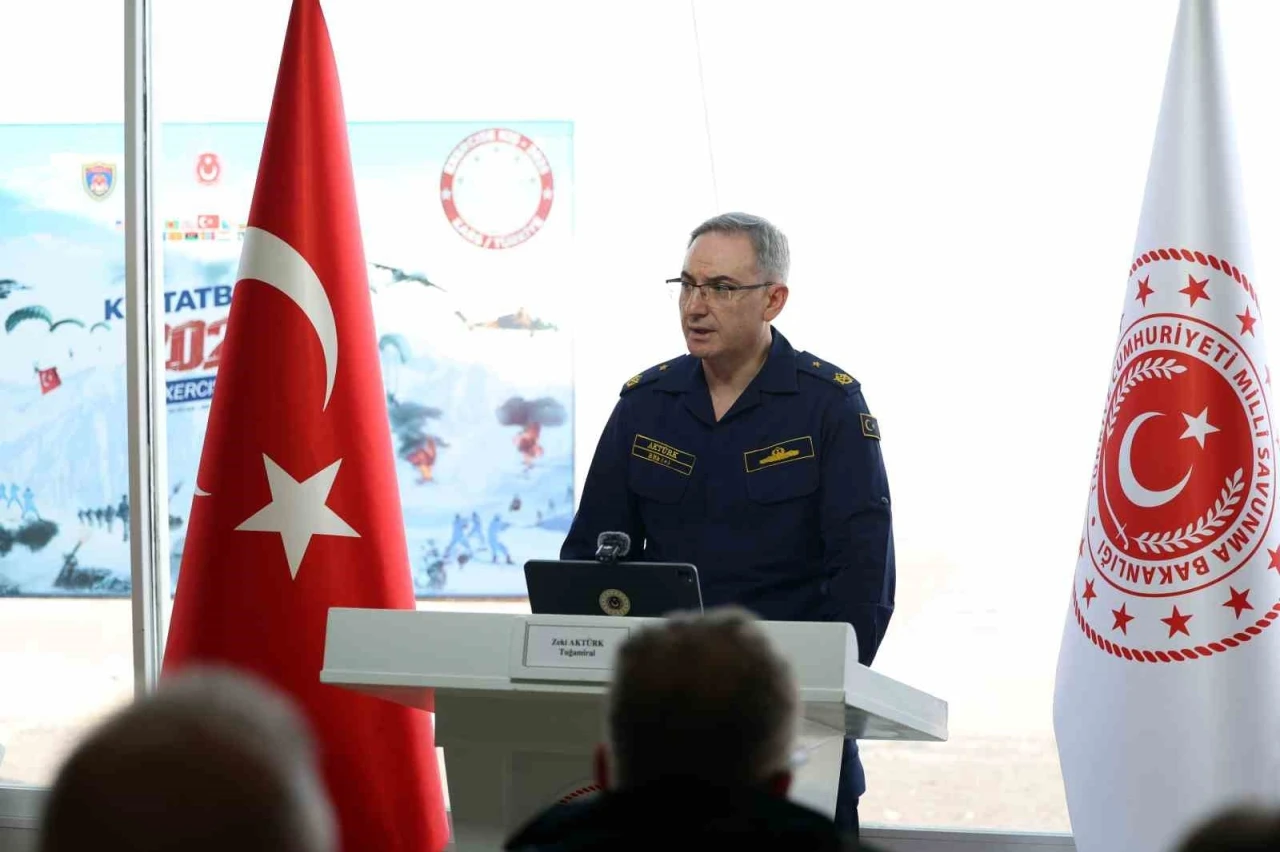 Aktürk, Kara, Deniz ve Hava Kuvvetleri Komutanlıklarının ve Özel Kuvvetler Komutanlığı ile sivil kamu kurum ve kuruluşlarının da katıldığı Kış-2025 Tatbikatı’na yaklaşık 12 bin personel ile 19 dost ve müttefik ülkeden 199 personelin iştirak ettiğini bildirdi. Terörle mücadele harekâtı