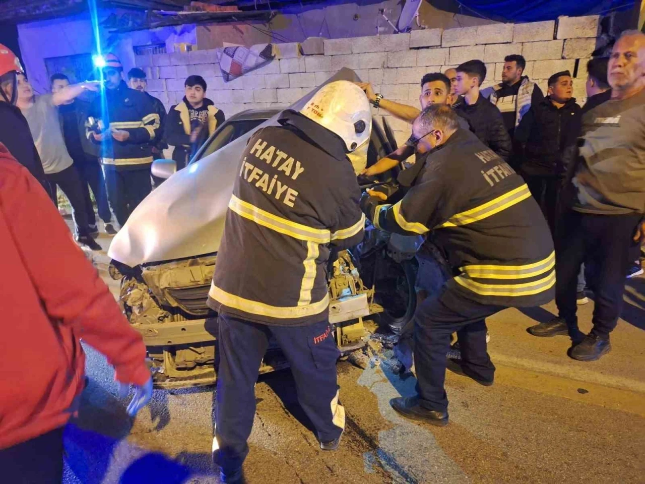 Hatay’da aydınlatma direğine çarpan otomobildeki 2 kişi yaralandı.
