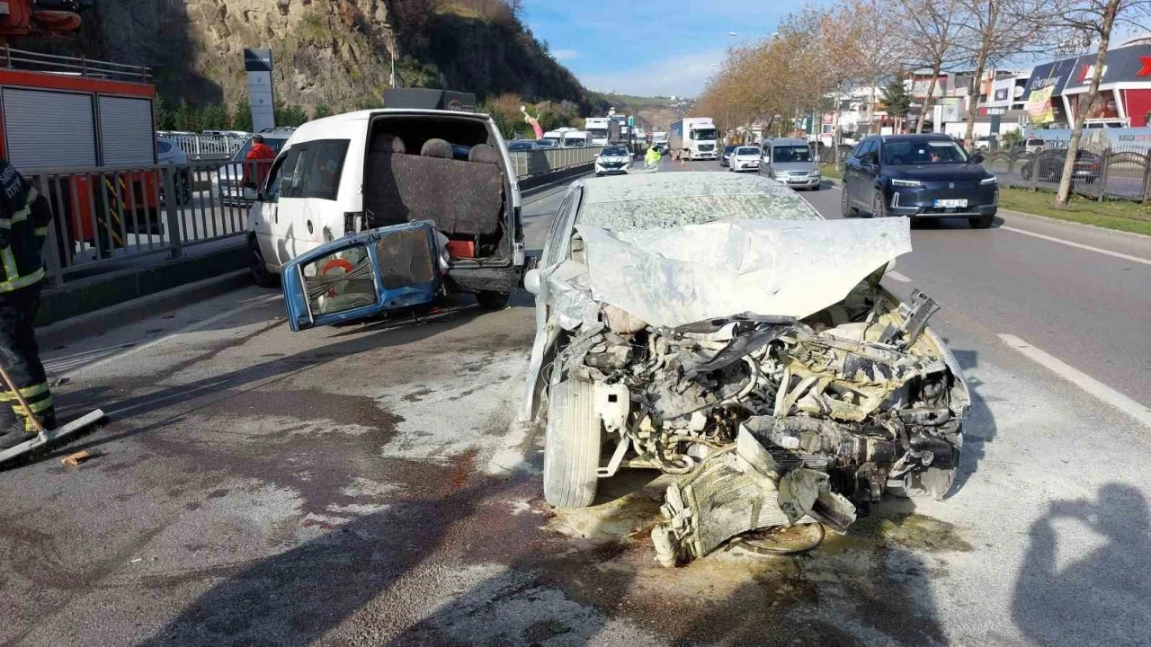 Samsun’da otomobilin lastiği patlayan hafif ticari araca arkadan çarparak hurdaya döndüğü kazada sürücü yaralandı.