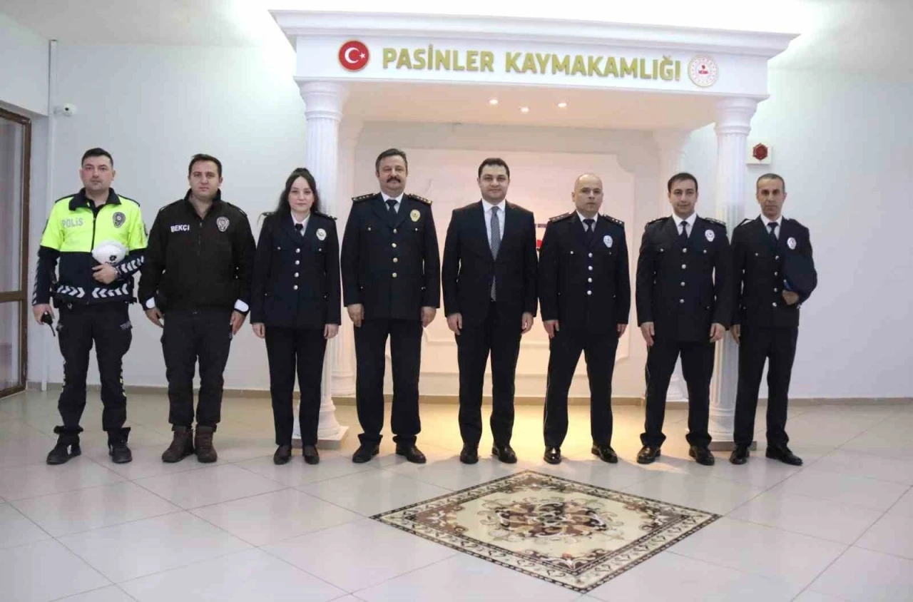 Polis Haftasının 180. yıl dönümü kutlama etkinlikleri çerçevesinde, Pasinler İlçe Emniyet Müdürü Mehmet Doğan ve emniyet mensupları kaymakam Temel’i ziyaret etti.