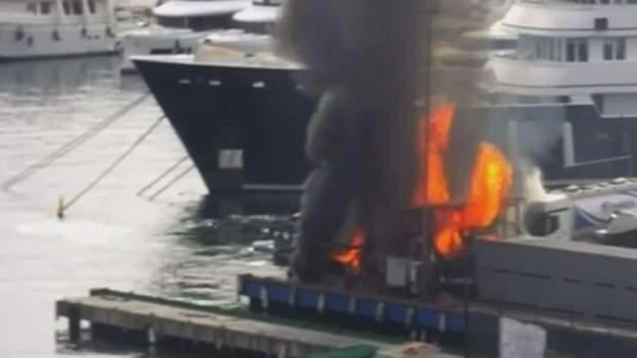 Batı Mahallesi Sahil Bulvarı'nda yat limanındaki yakıt istasyonunda yer alan atık yağ depolama alanında, henüz belirlenemeyen nedenle yangın çıktı.