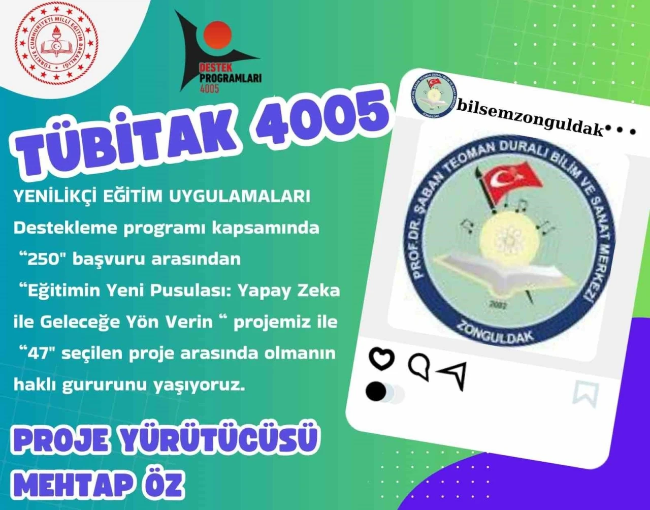 Ayrıca, kurum öğretmenlerinden Mehtap Öz’ün yürütücülüğünü yaptığı "Eğitimin Yeni Pusulası: Yapay Zeka ile Geleceğe Yön Verin" projesi de büyük bir başarıya imza attı. TÜBİTAK 4005 Yenilikçi Eğitim Uygulamaları kapsamında başvuran 250 proje arasından desteklenmesine karar verilen 47 proje arasına girdi. Bu kapsamda, Mayıs ayında 30 öğretmenin alanında uzman akademisyenlerden yapay zeka eğitimi alması planlanıyor.
