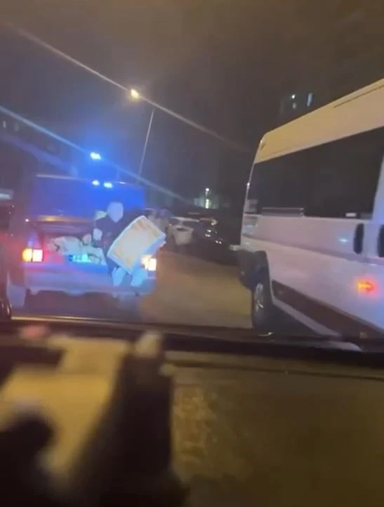 Küçükçekmece’de Ramazan davulcusu, otomobilin bagaj kısmına oturup davul çalarak sokak aralarında ilerledi. Tehlikeli yolculuk, başka araçta bulunan bir kişinin cep telefonu kamerasına anbean yansıdı.