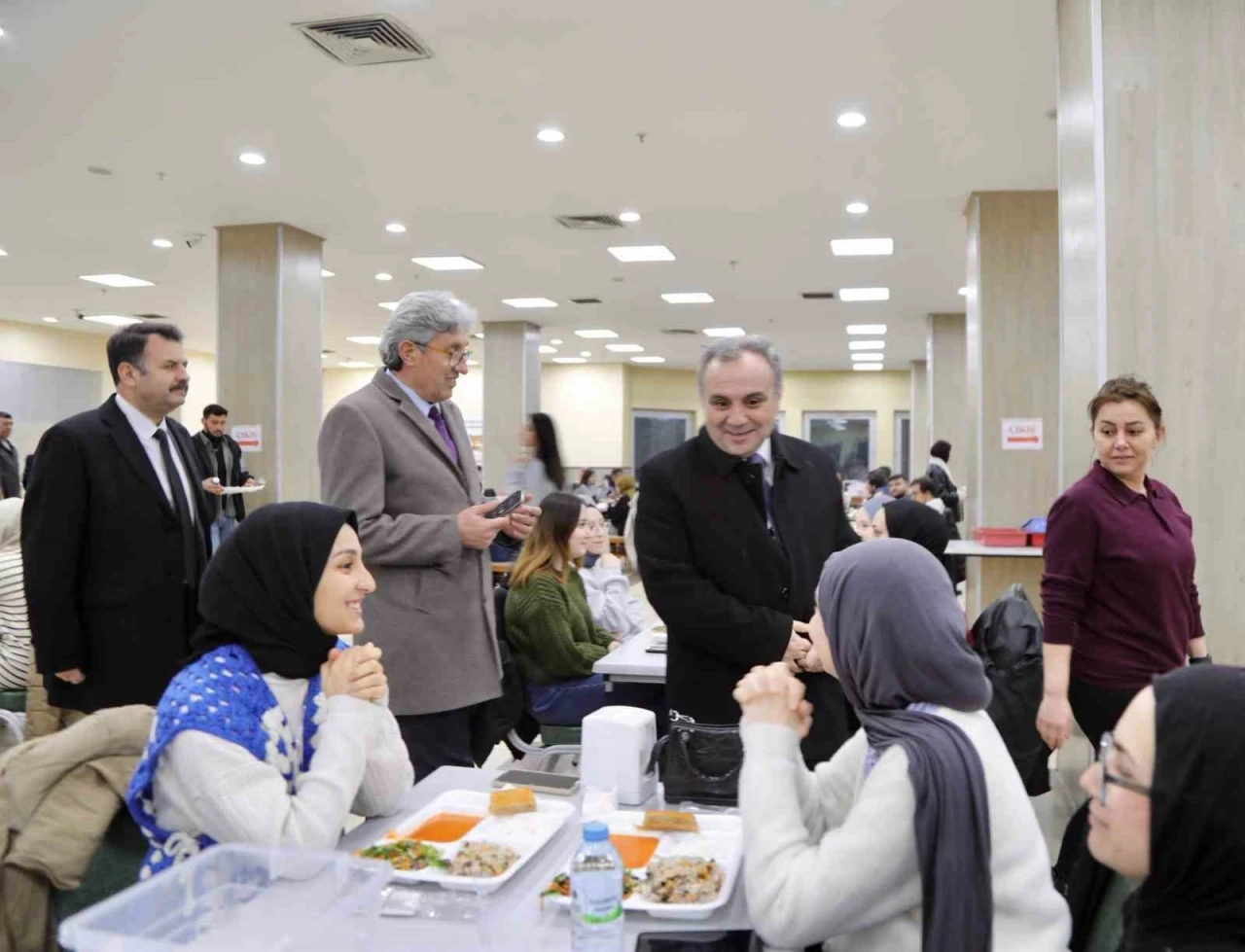 Erciyes Üniversitesi (ERÜ) Rektörü Prof. Dr. Fatih Altun, bugünkü iftarını öğrenci yemekhanesinde öğrencilerle yaptı.