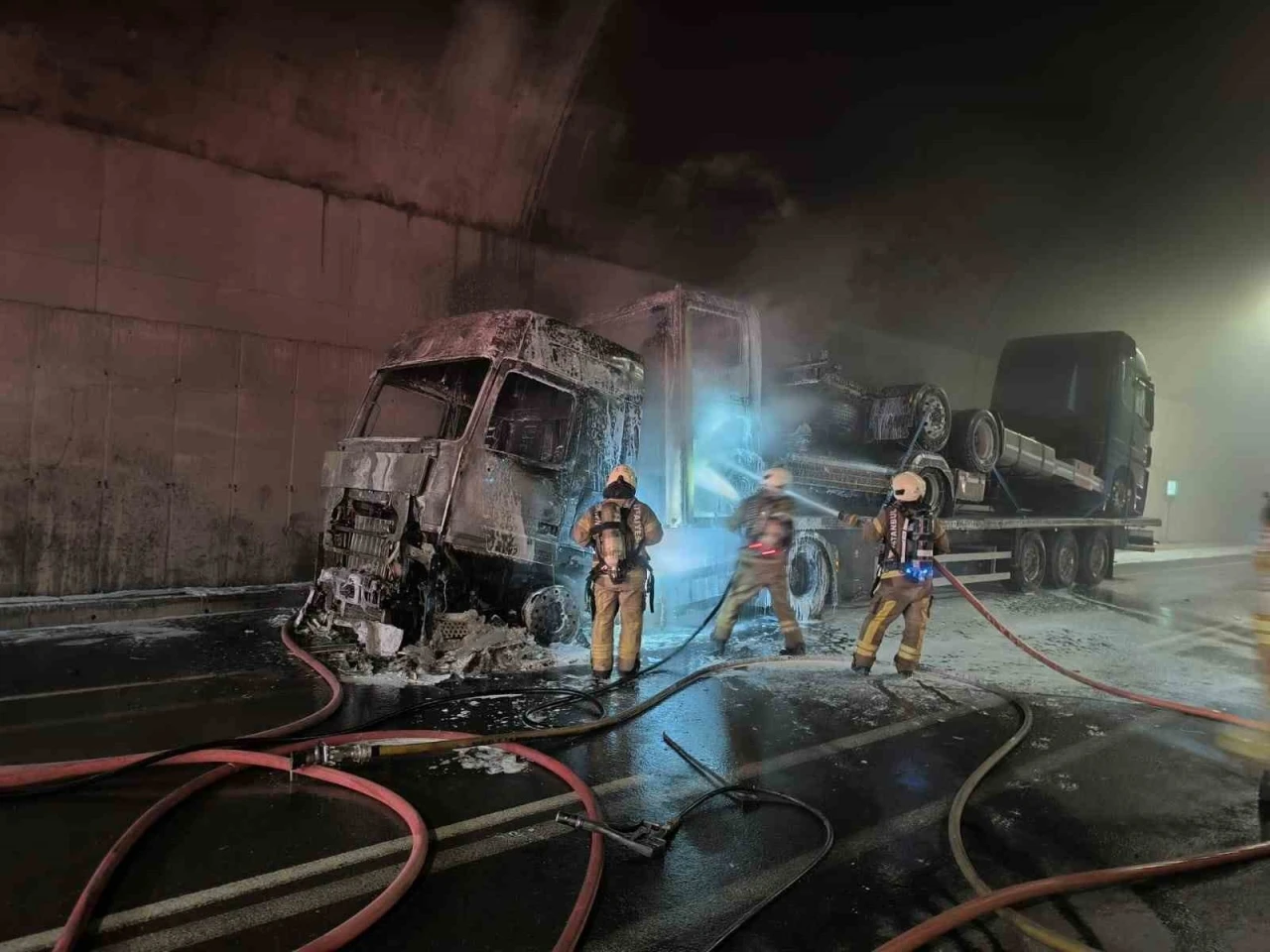 Pendik Sabiha Gökçen Havalimanı bağlantı yolundaki tünelde seyir halinde olan tırın kupa kısmında yangın çıktı. Yangın, paniğe neden olurken, yaşanan patlama anı cep telefonu kamerasına yansıdı. Olay, Pendik Tersane Kavşağı TEM Bağlantı Yolu üzerinde bulunan tünelde meydana geldi. Edinilen bilgiye göre, tünel içerisinde seyir halinde olan bir tırın kupa kısmından duman çıkmaya başladı. Durumu fark eden tır şoförü, tır yüklü aracı yol kenarına çekerek hızla dışarı çıktı. Kısa sürede tırın kupa kısmı alevlere teslim oldu. Çevredeki sürücülerin ihbarı üzerine olay yerine çok sayıda itfaiye ve polis ekibi sevk edildi. 12 araç ve 25 itfaiye personeli ile yangına müdahale edildi. İtfaiye ekiplerinin müdahalesiyle yangın kontrol altına alınarak söndürüldü. Öte yandan, yangın sırasında yaşanan patlama, tünel içindeki diğer sürücülerin cep telefonu kamerasına yansıdı. Patlamanın etkisiyle kısa süreli panik yaşanırken, tünelde yoğun trafik oluştu. Yangın nedeniyle yaralanan olmazken, alev alev yanan tır kullanılamaz hale geldi. Olayla ilgili soruşturma başlatıldı.