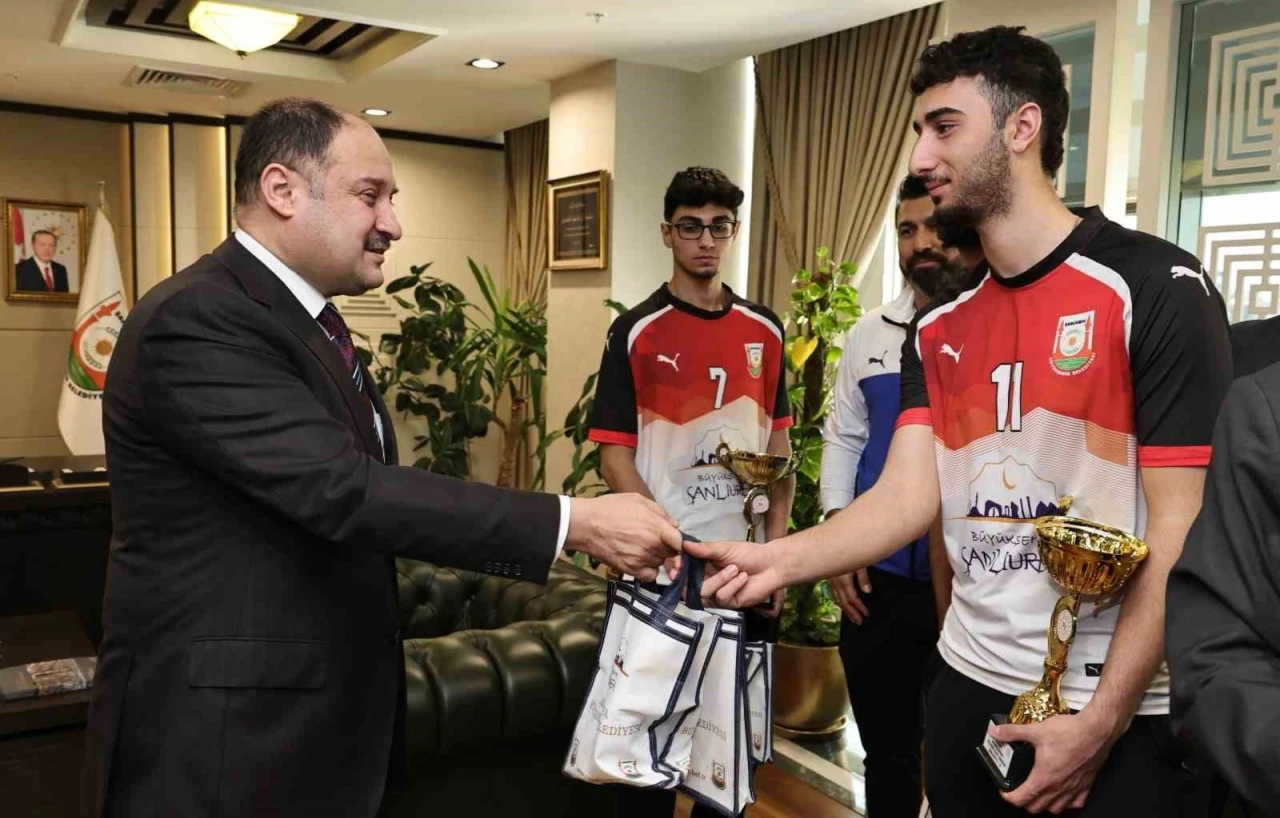 Şanlıurfa Büyükşehir Belediyespor Erkek Voleybol Takımı, 2024-2025 sezonunda büyük bir başarıya imza atarak il müsabakalarında 5 farklı kategoride şampiyonluk kazandı. Şanlıurfa Büyükşehir Belediye Başkanı Mehmet Kasım Gülpınar, şampiyon sporcuları makamında kabul etti. Ziyarette, erkek voleybol takımının genç erkekler, yıldız erkekler, küçük erkekler, midi erkekler ve bölgesel lig kategorilerindeki şampiyonluklarının ardından elde edilen 5 kupa, takım kaptanları tarafından Gülpınar’a sunuldu. Bu şampiyonluklarla büyükşehir belediyesinin takımları Şanlıurfa’yı, bölgesel müsabakalarda temsil etme hakkı kazandı.