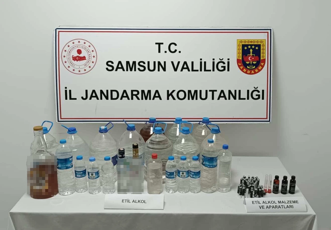 Samsun’da jandarma tarafından düzenlenen operasyonda 55 litre etil alkol ve 56 adet anason aroma kiti ele geçirildi.