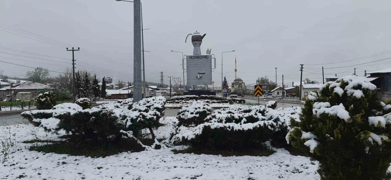 Samsun’un Vezirköprü ilçesinde Nisan ayında kar yağışı etkili oldu.