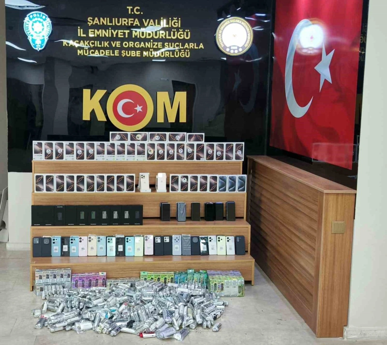 Şanlıurfa İl Emniyet Müdürlüğüne bağlı ekipler, kaçakçılıkla mücadele çalışmalarını sürdürüyor. Bu kapsamda düzenlenen operasyonda piyasa değeri 7 milyon 400 bin TL 139 adet gümrük kaçağı cep telefonu ile 483 gümrük kaçağı elektronik sigara ele geçirildi. Olaya ilişkin 2 şüpheli şahıs yakalanarak gözaltına alındı.