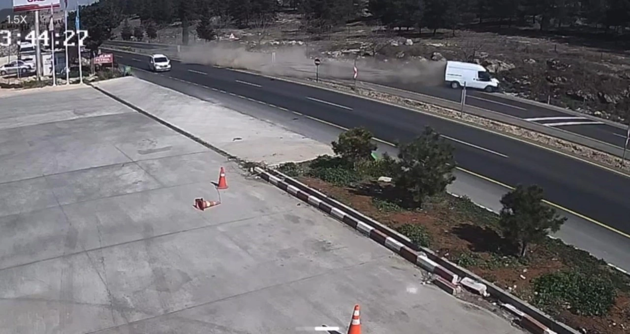 Kaza, Şanlıurfa-Gaziantep karayolunun 24. kilometresinde meydana geldi. Mehmet Fırat Y. (42) idaresindeki 48 UC 443 plakalı kapalı kasa minibüs, sürücüsünün direksiyon hakimiyetini kaybetmesi sonucu karşı şeride geçerek, kayalıklara çarptı. Kazada sürücü ile yanında bulunan Eyüp K. yaralandı. Yaralılar, ihbar üzerine olay yerine giden 112 Acil Servis ekiplerince ambulansla Balıklıgöl Devlet Hastanesine kaldırıldı. Kaza anı ise bölgedeki bir akaryakıt istasyonunun güvenlik kamerasına yansıdı.