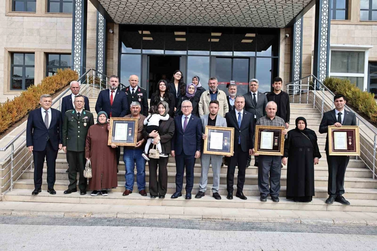 Törende, Malul Gazi Tnk. Uzm. Çvş. Veyis Başel, Şehit P. Uzm. Çvş. Özkan Lale, Malul P. Uzm. Çvş. Azmi Şahin ve Şehit P. Uzm. Çvş. Ömer Yıldırım’ın madalya ve beratları, Vali Şimşek tarafından sunuldu.