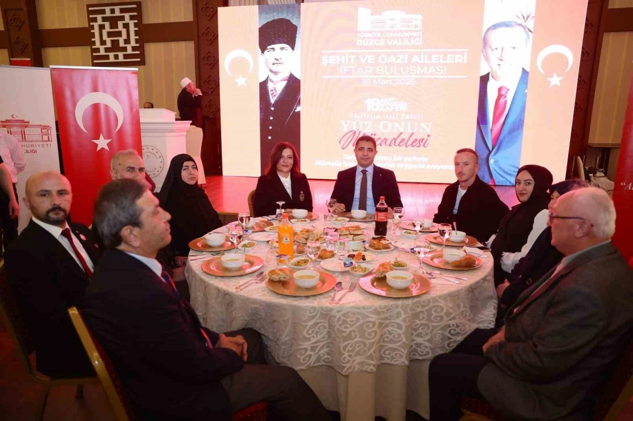 Düzce Valisi Selçuk Aslan ile eşi Pınar Aslan’ın ev sahipliğinde, 18 Mart Şehitleri Anma Günü ve Çanakkale Zaferi’nin 110. yıl dönümü dolayısıyla iftar programı düzenlendi. Programda şehit aileleri, gaziler ve yakınları ile bir araya gelindi.