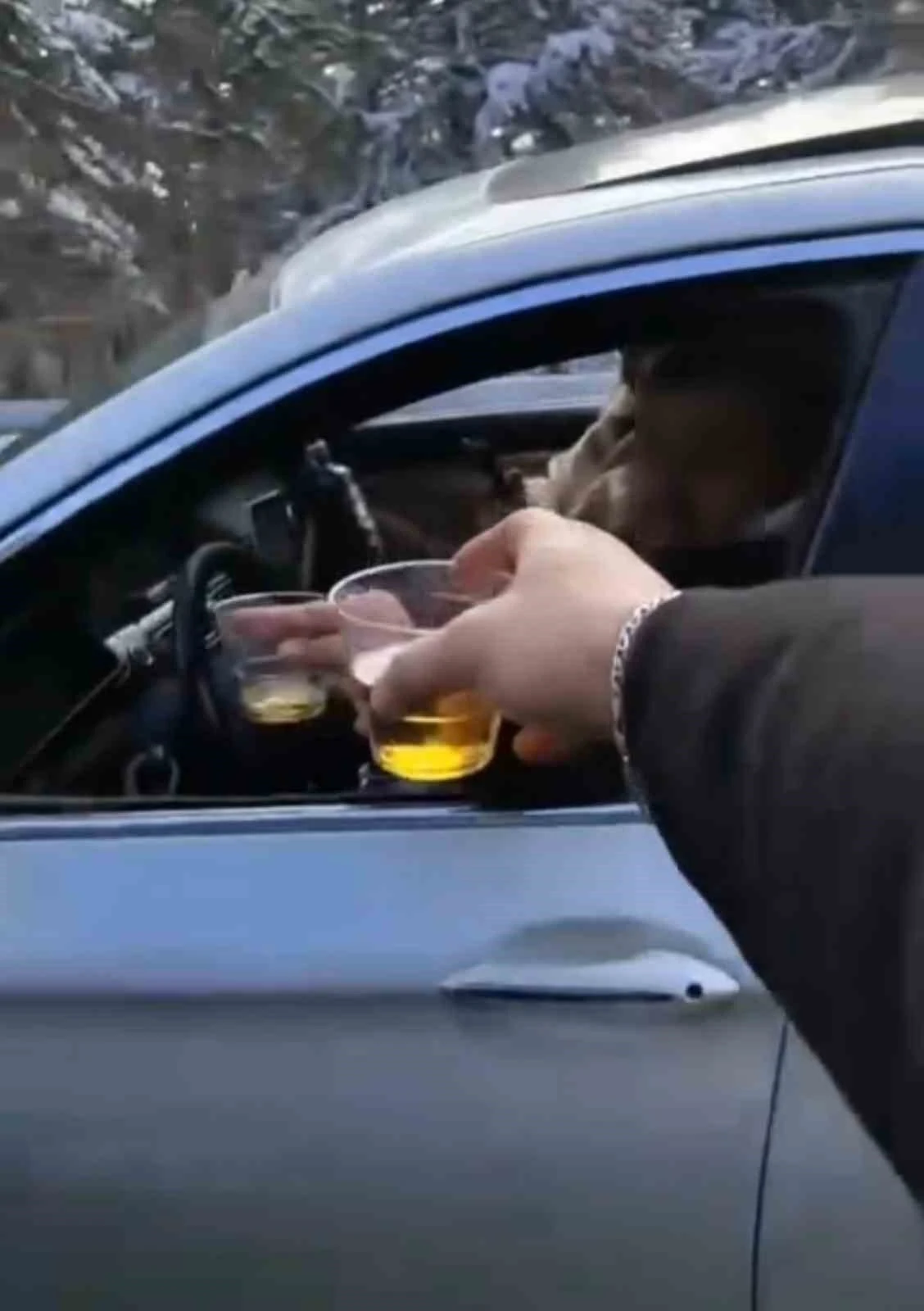 Bursa Uludağ yolunda ilerleyen otomobil sürücüsü, yanına başka bir araçla yanaşan arkadaşı ile seyir halindeyken alkol alıp kadeh tokuşturdu. O anları kayda alan sürücü, sosyal medyada paylaşım yapınca vatandaşlar tarafından da tepki aldı. Olayla ilgili tahkikat başlatıldı.