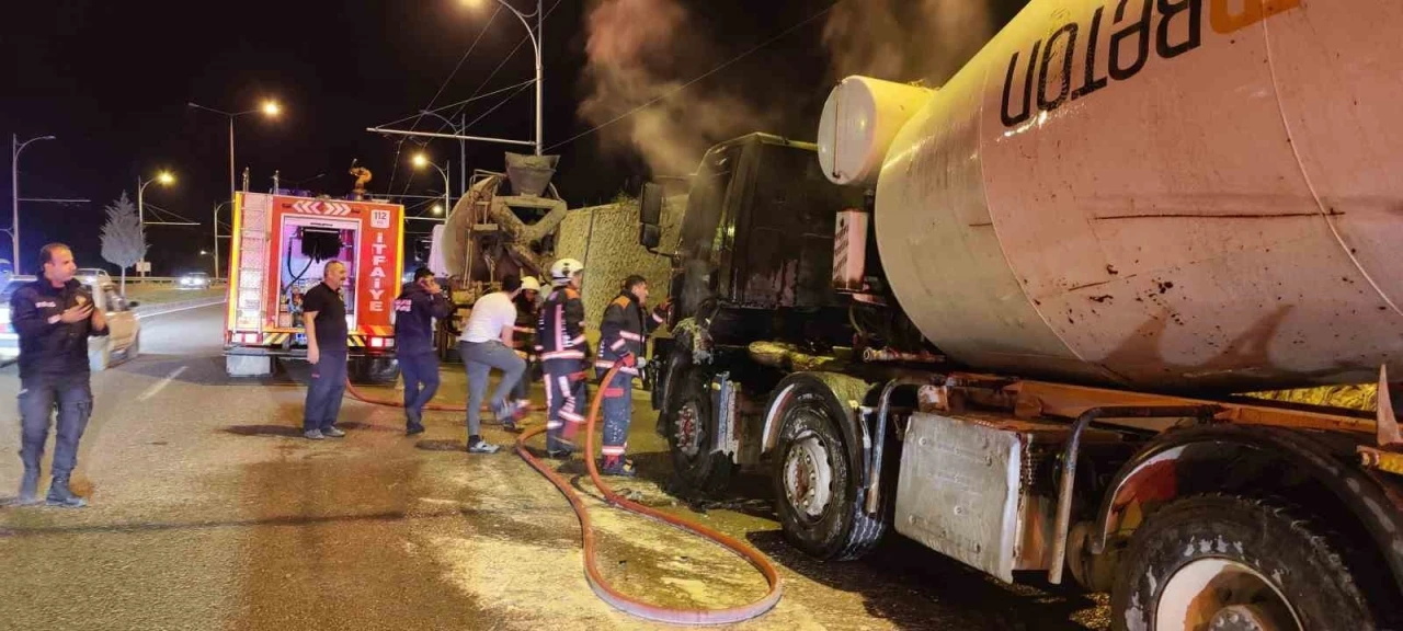 Malatya’da seyir halindeyken alev alan beton mikseri itfaiye tarafından söndürüldü.